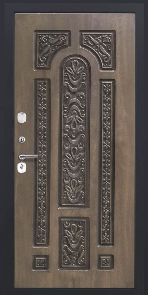 Дверь ДвериПРО Аура Д-19 (16мм, Грецкий орех + черная патина винорит) DPRO195588
